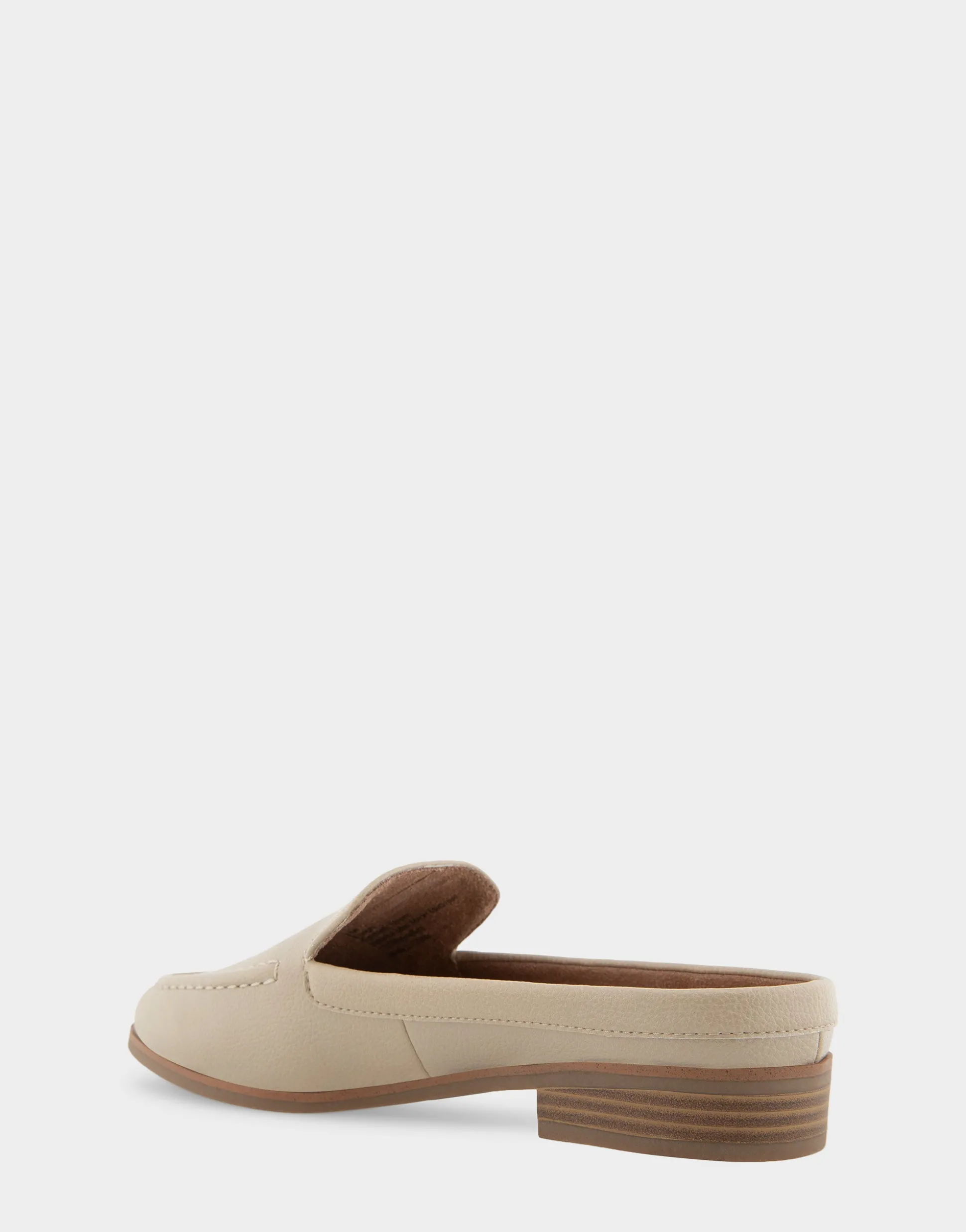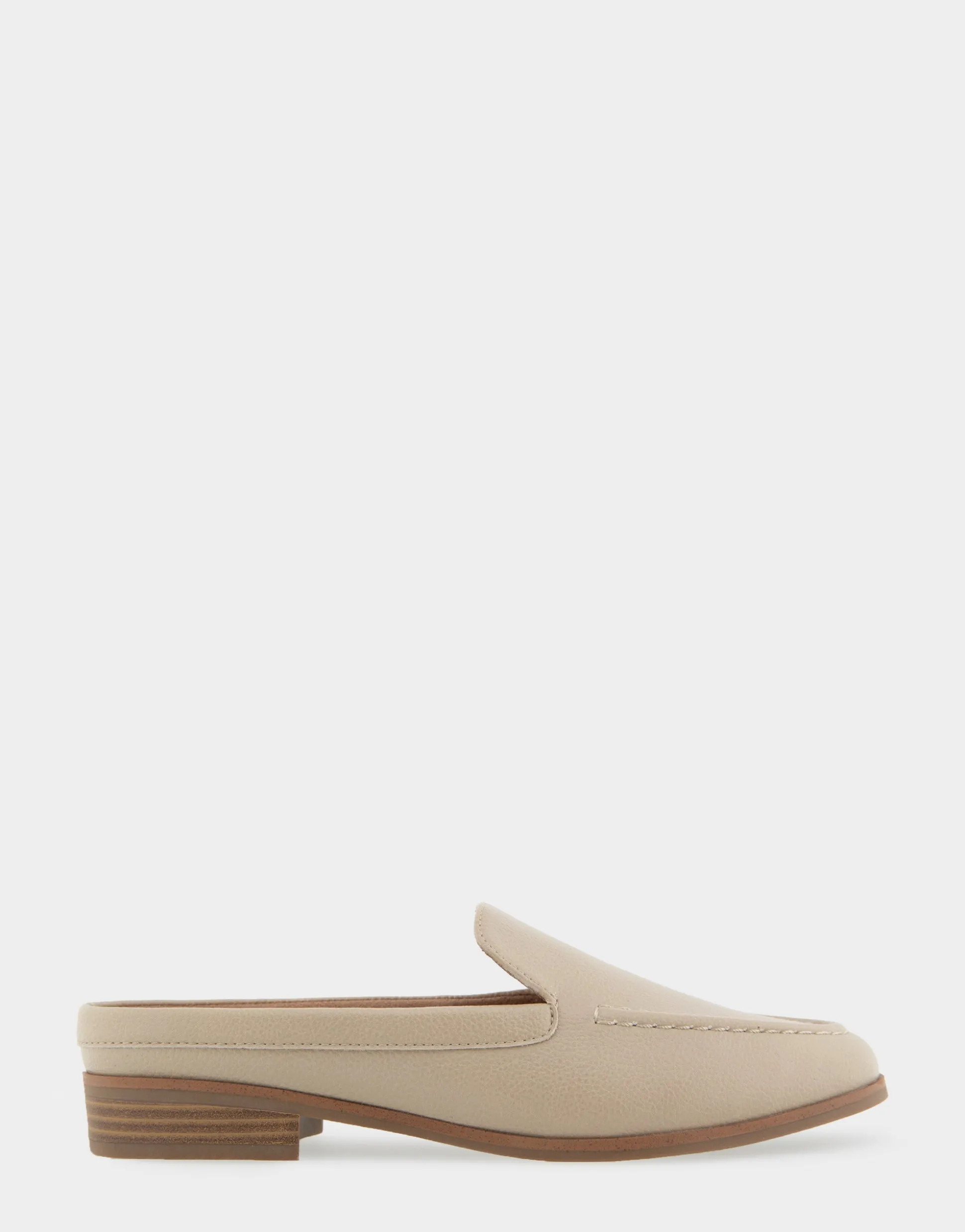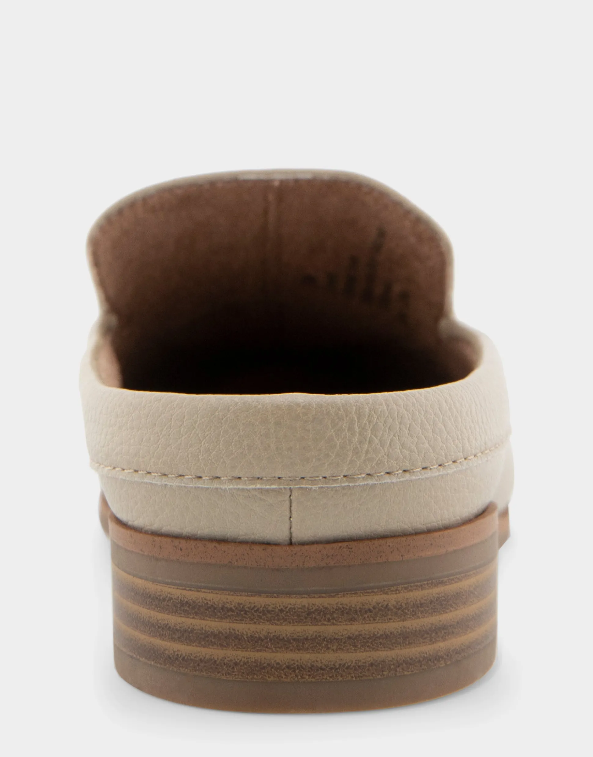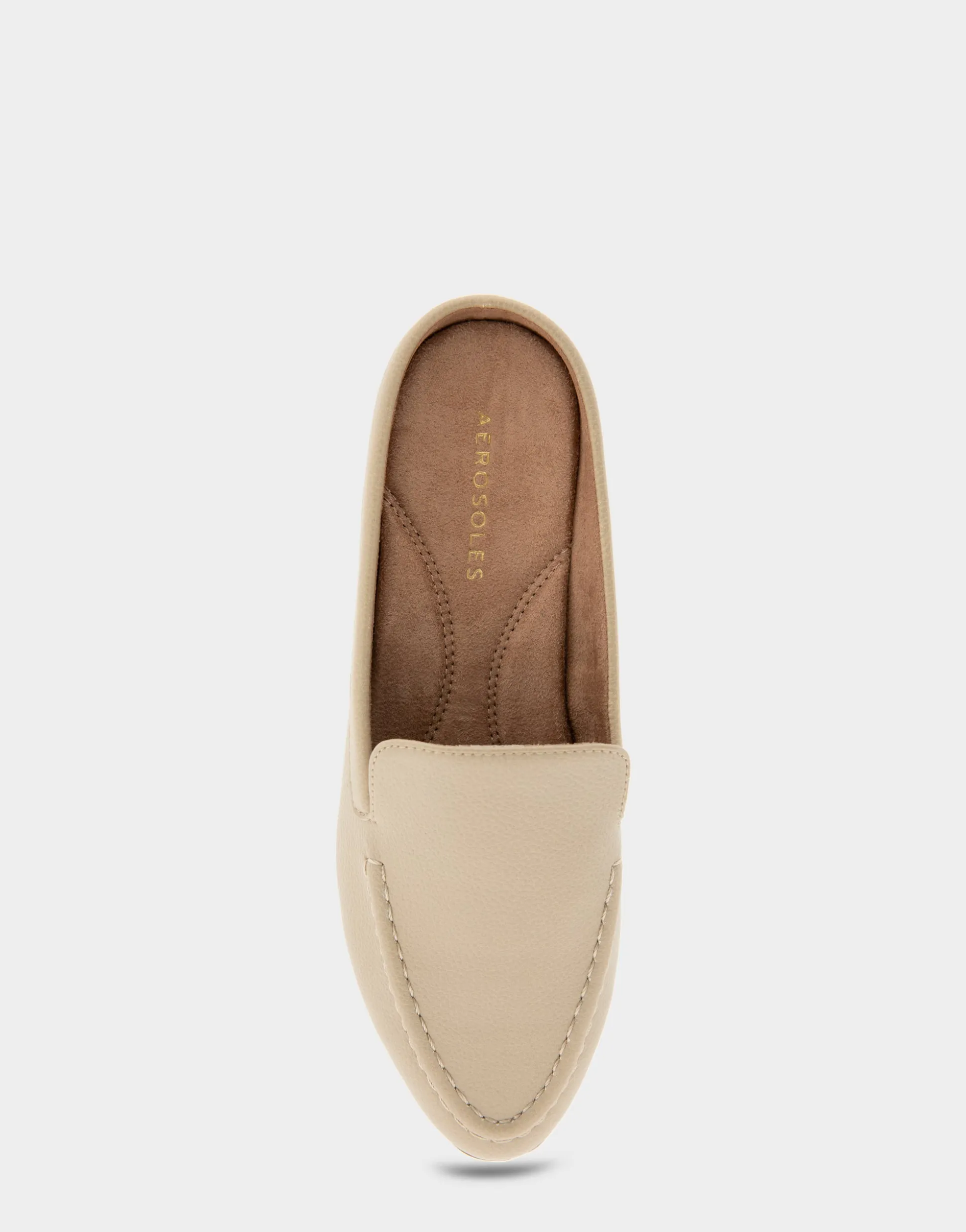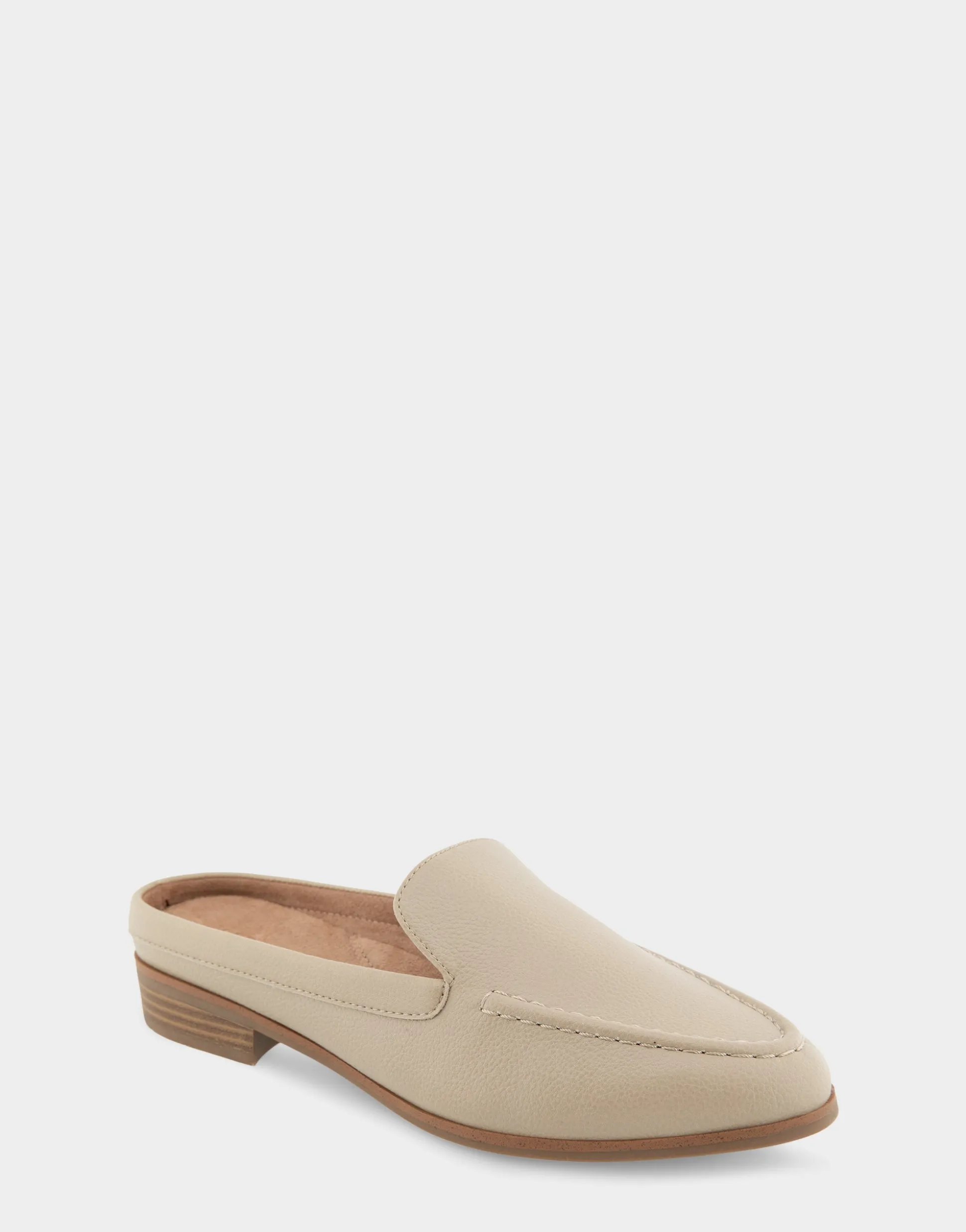 Comfortable Women’s Backless Slip On Loafer in Pale Khaki Faux Leather