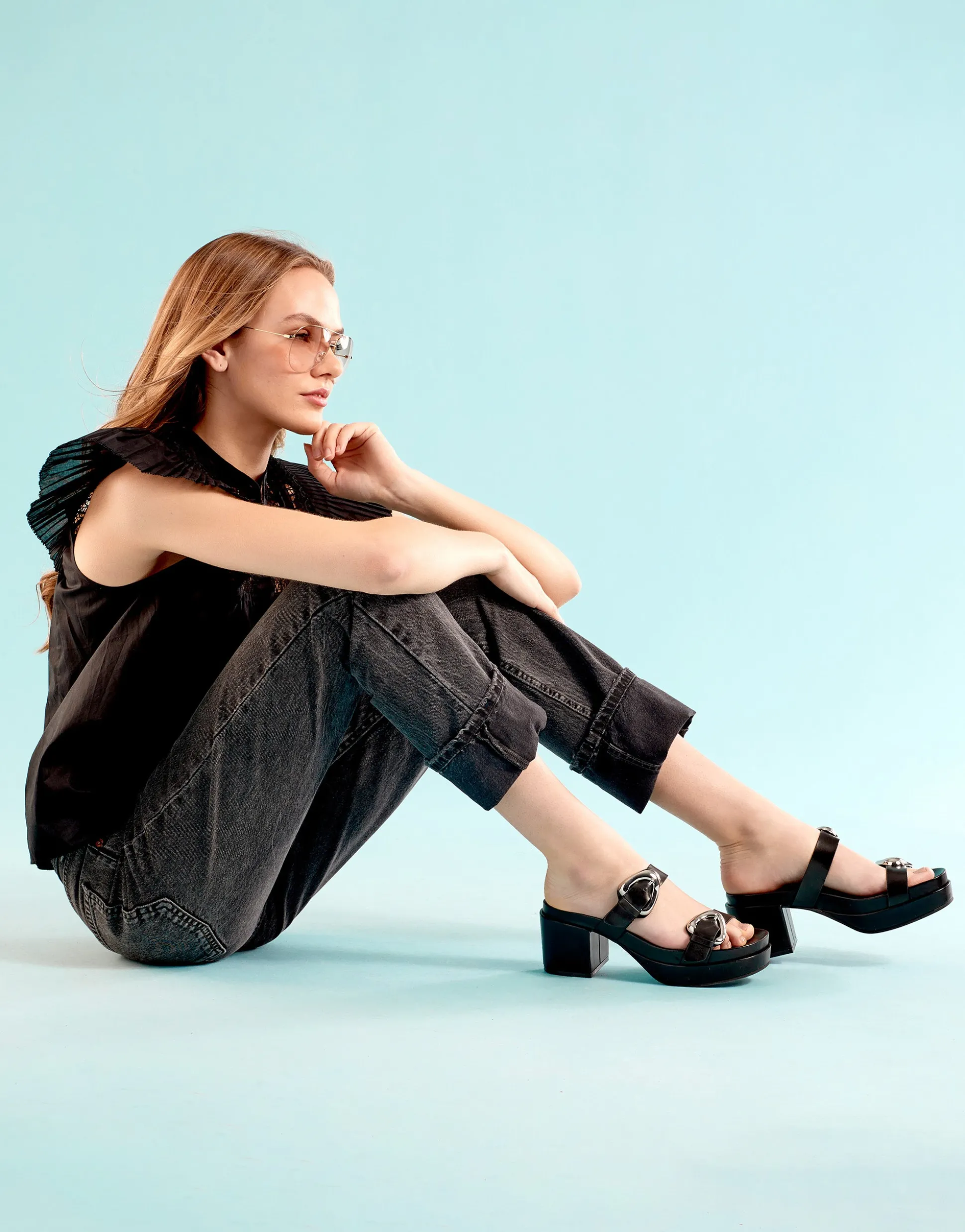 Be the first to review “Comfortable Women’s Molded Footbed Platform Slide Sandal in Black Leather” Cancel reply