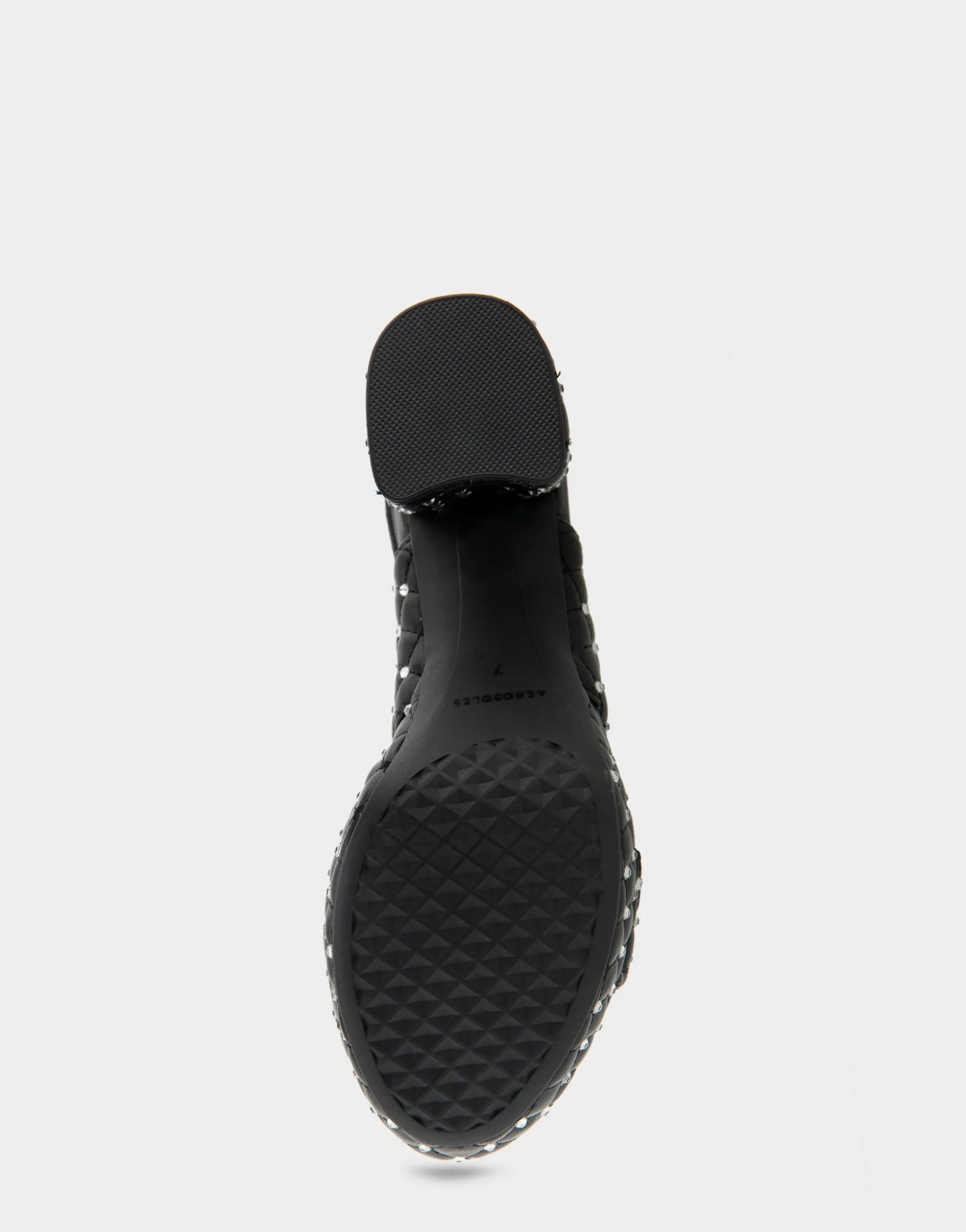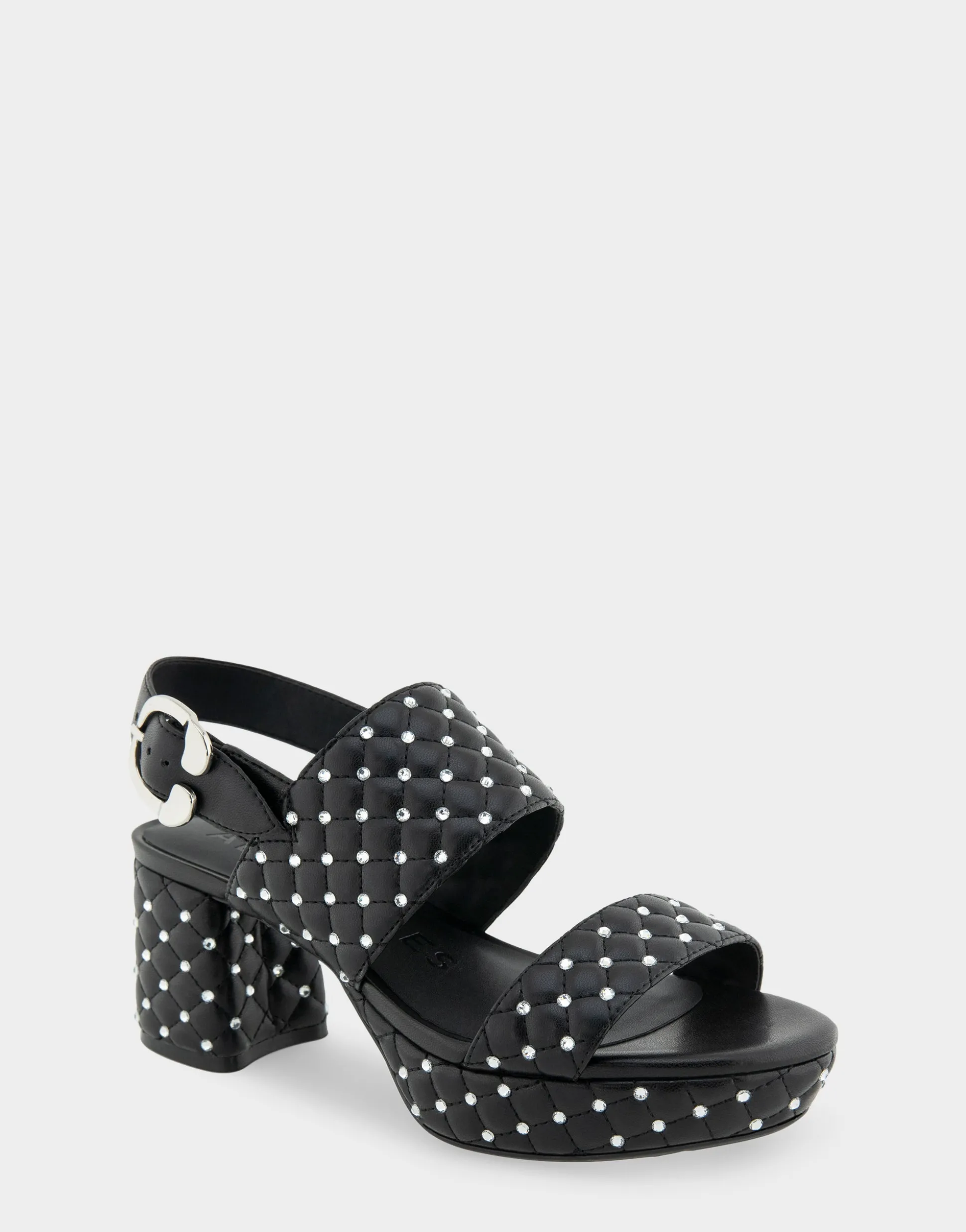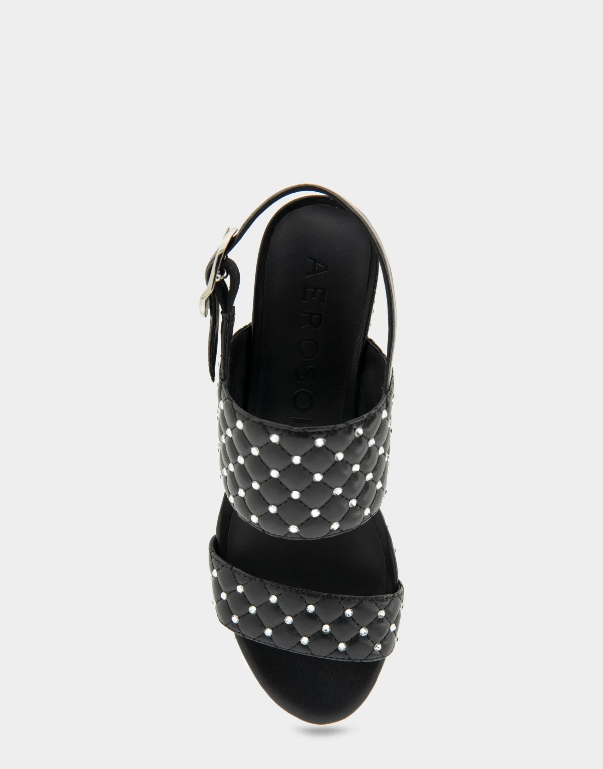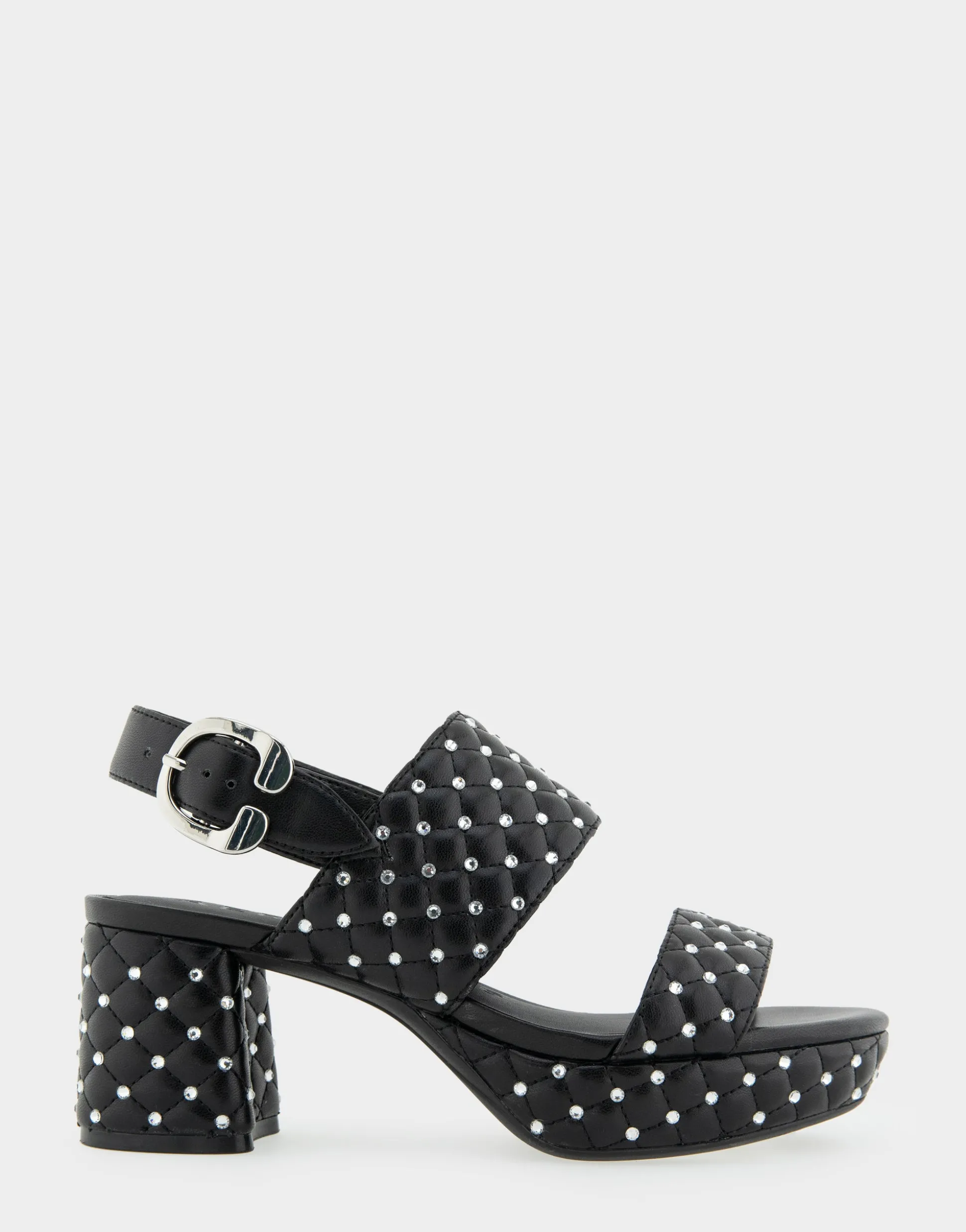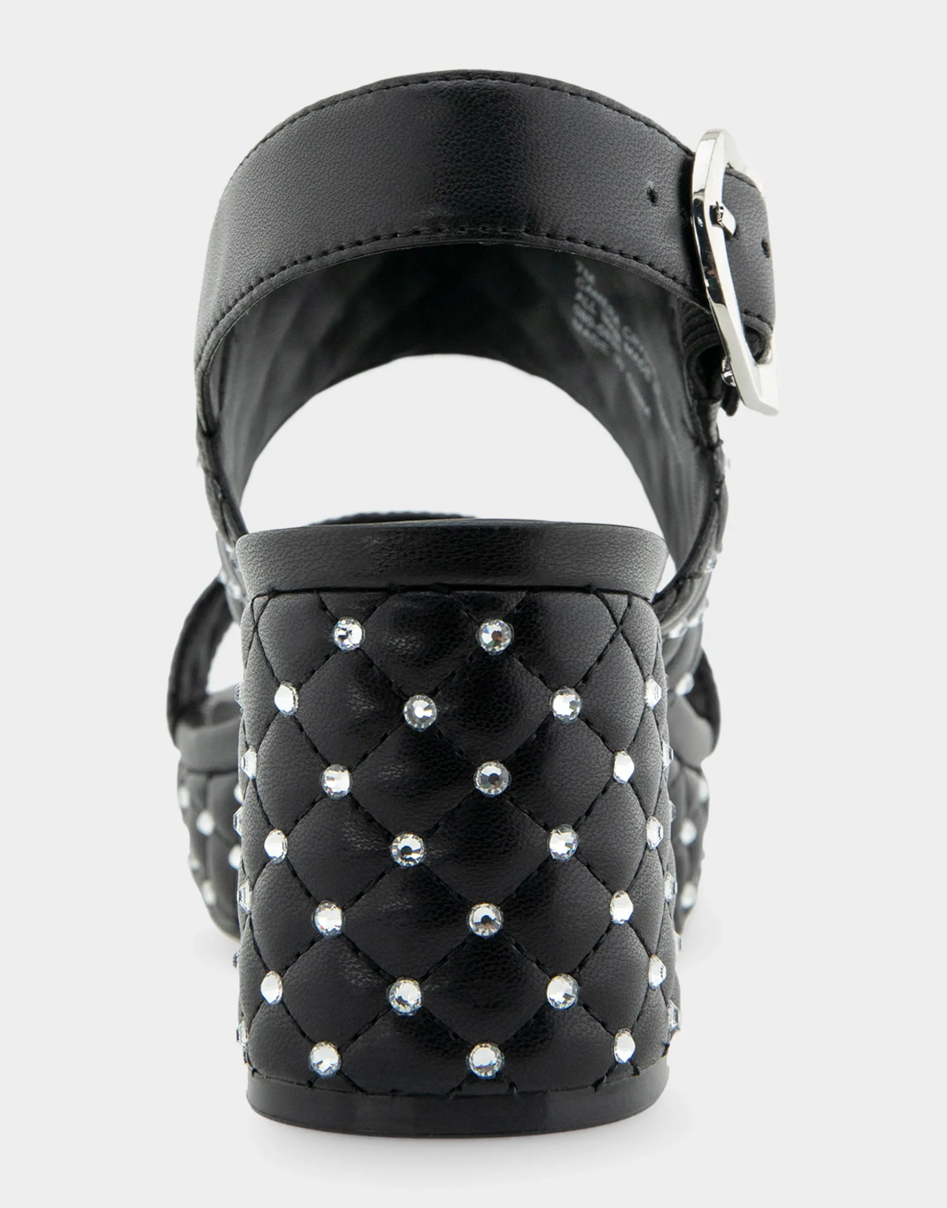 Comfortable Women’s Platform Sandal in Black Quilted Faux Leather With Crystals