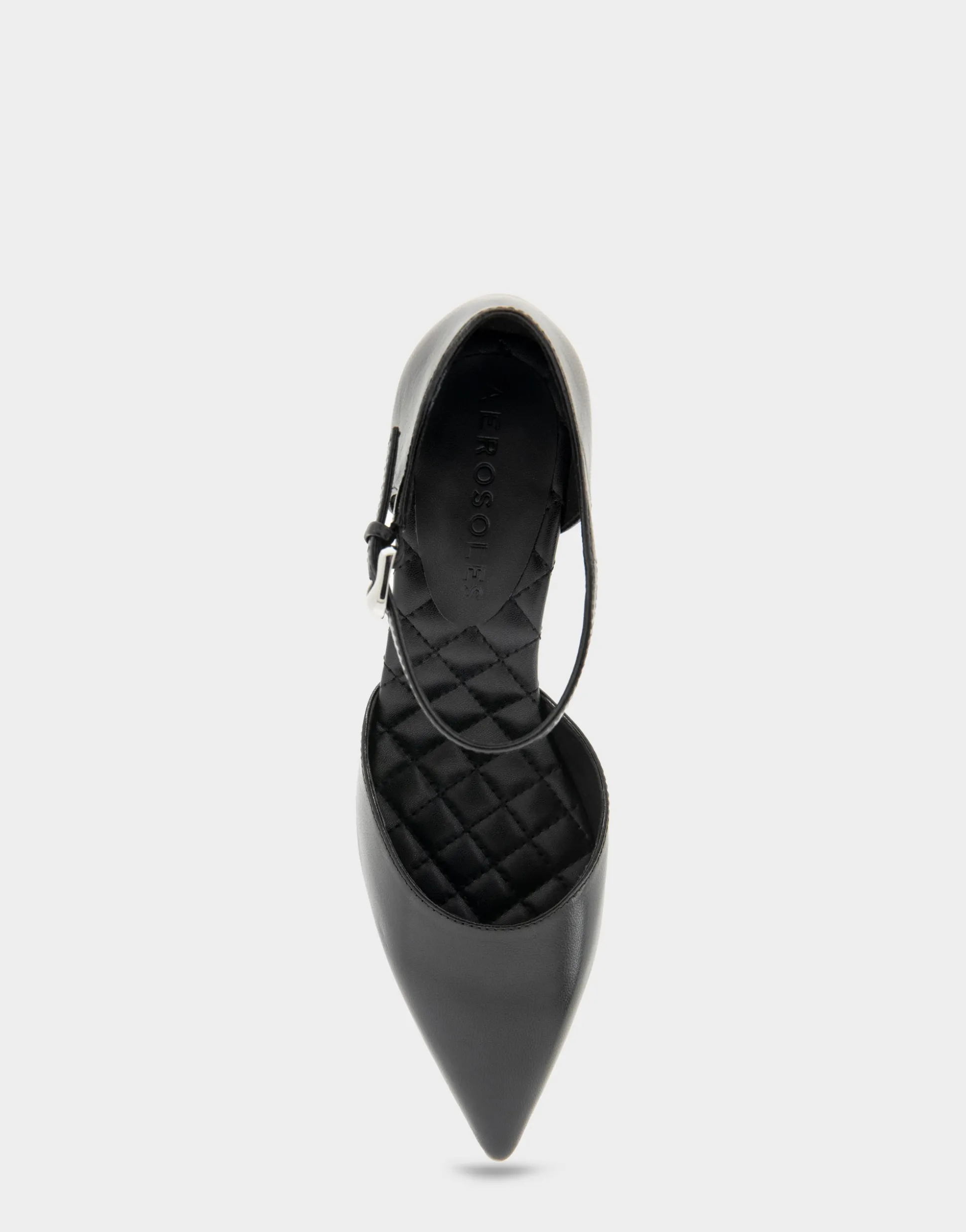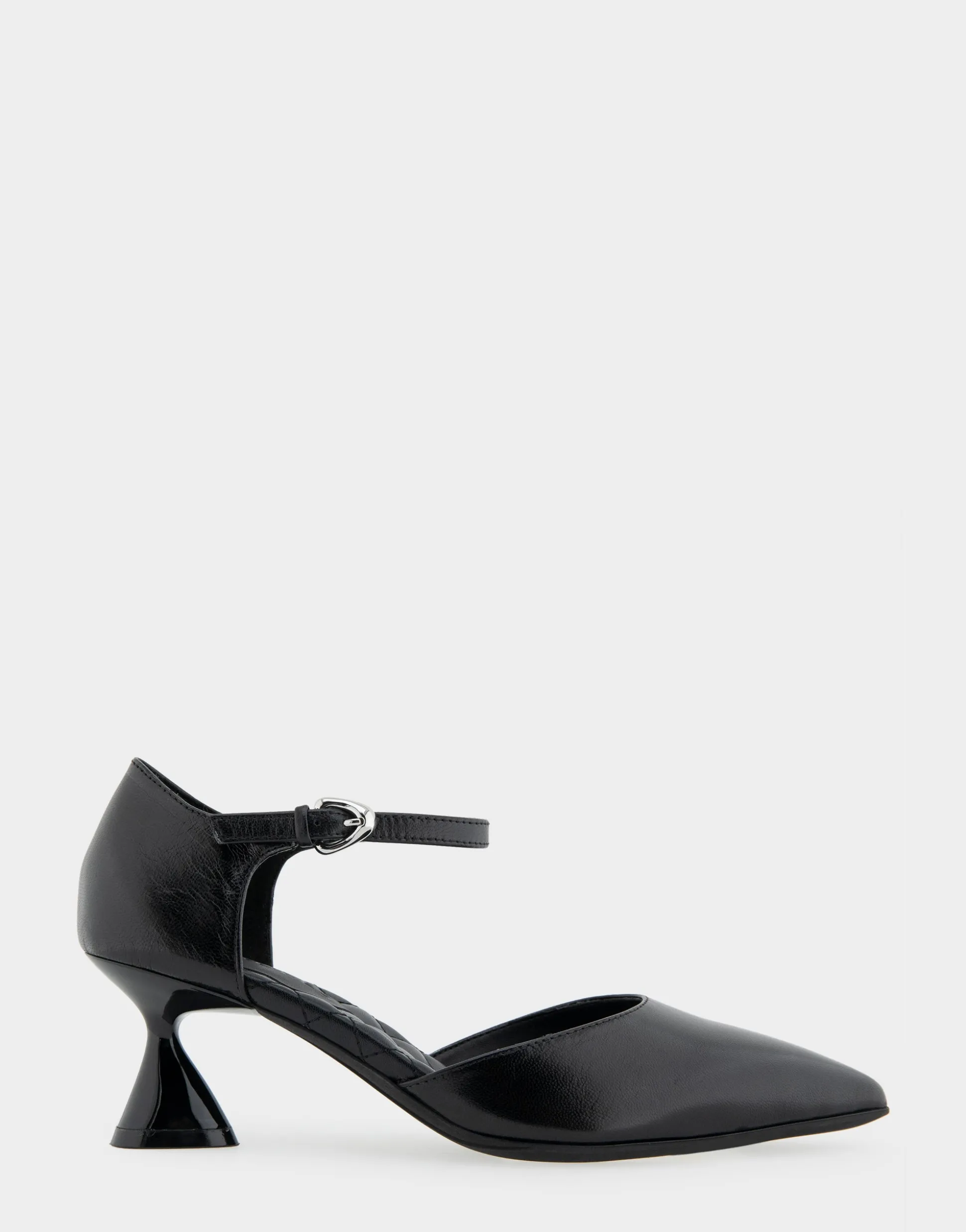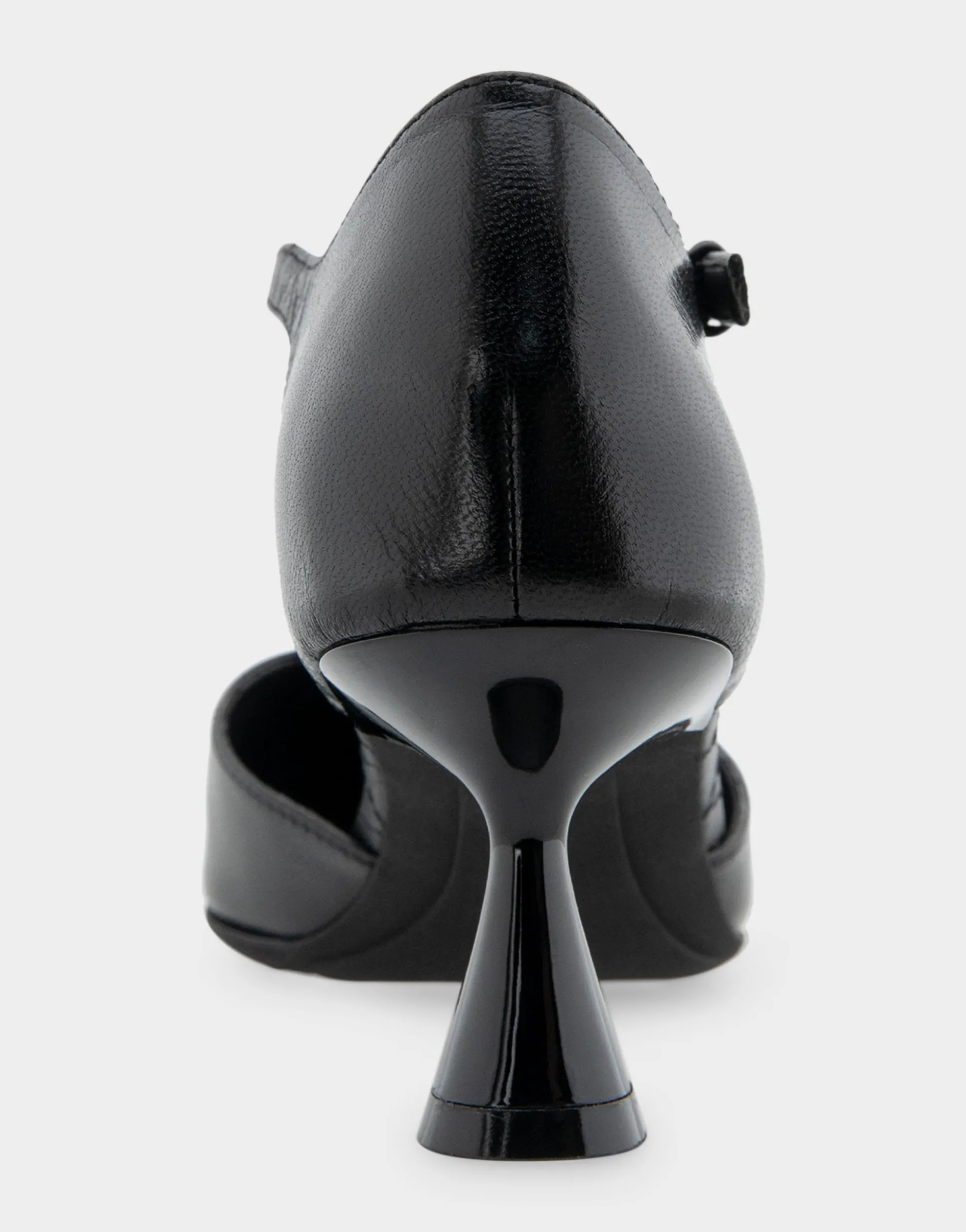 Comfortable Women’s Point Toe Two Piece Statement Heel Pump in Black Leather