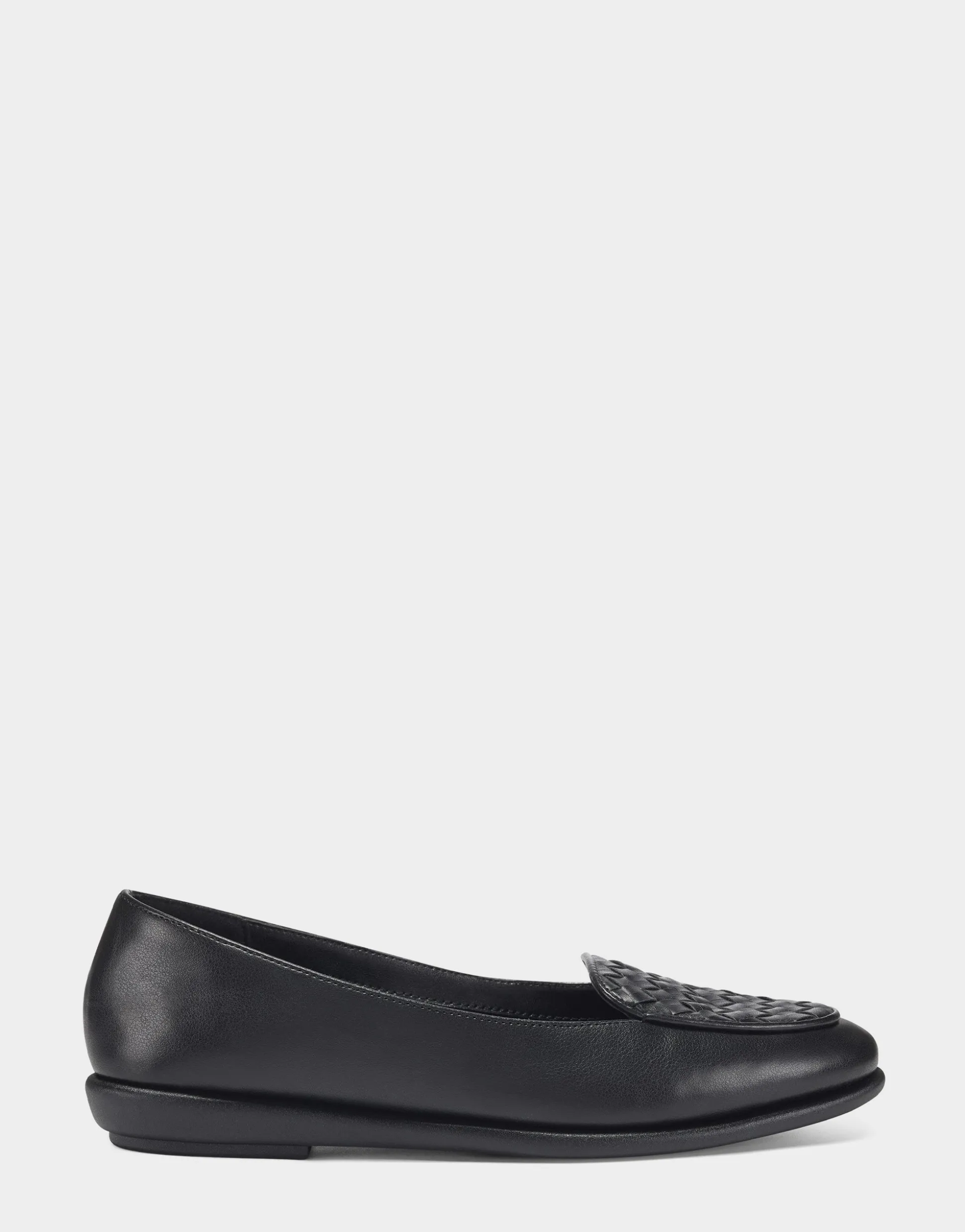 Comfortable Women’s Woven Plug Loafer in Black Faux Leather