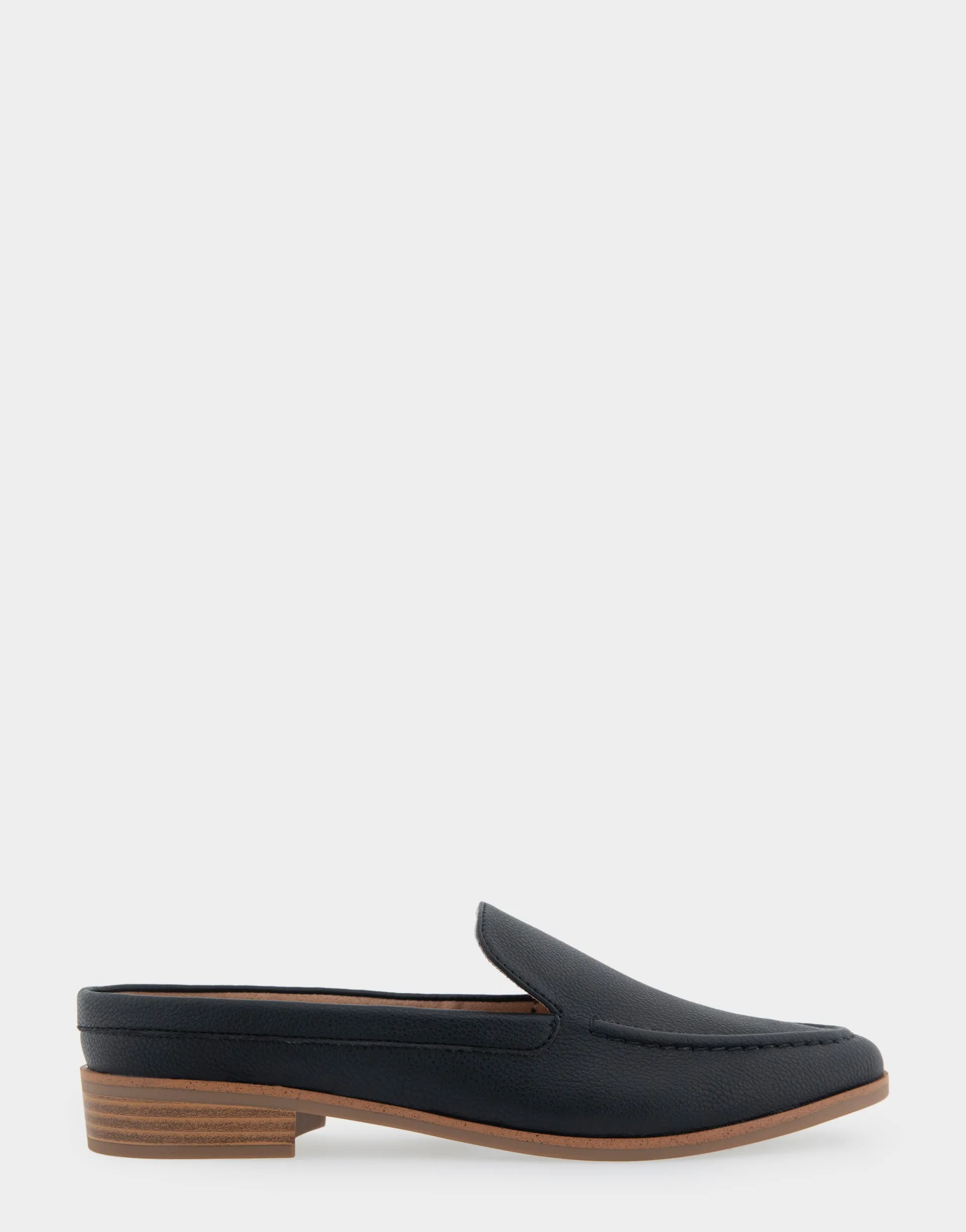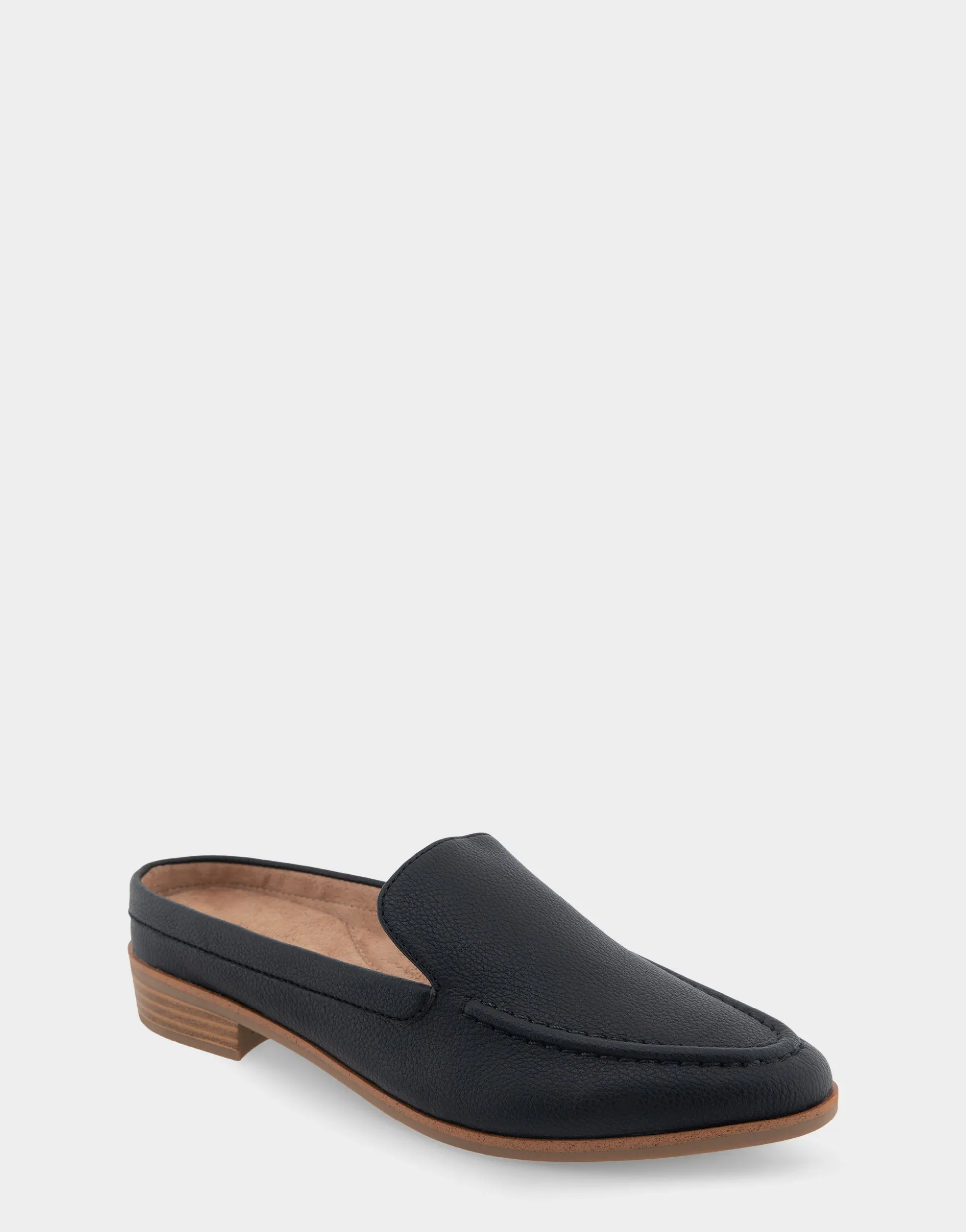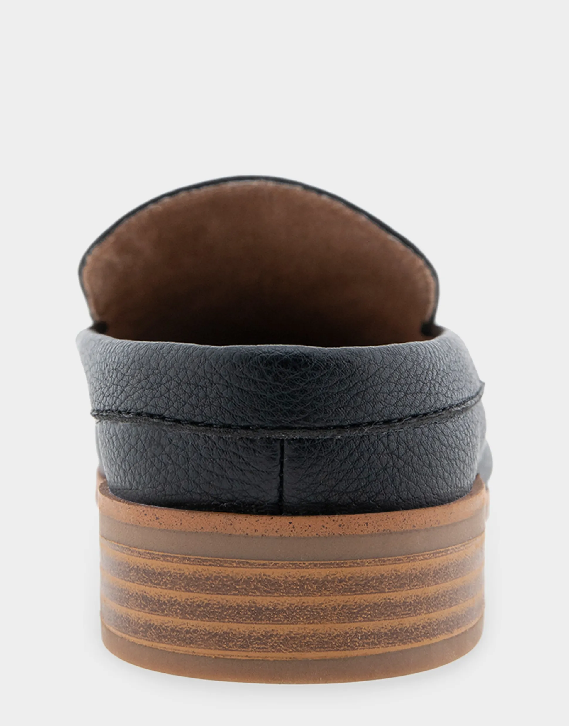 Comfortable Women’s Backless Slip On Loafer in Black Faux Leather