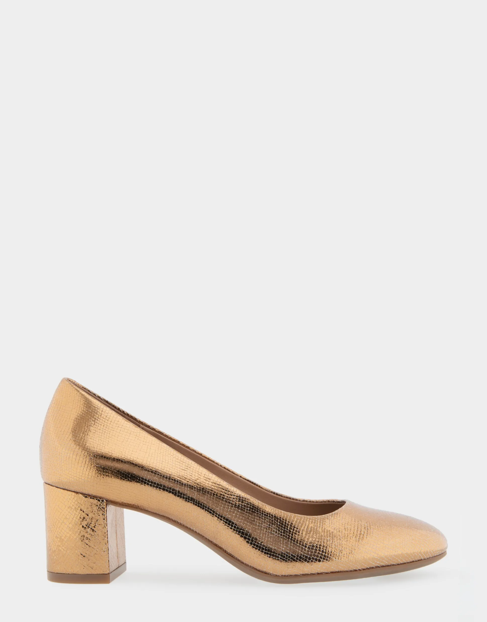 Comfortable Women’s Mid Heel Pump in Light Bronze Leather