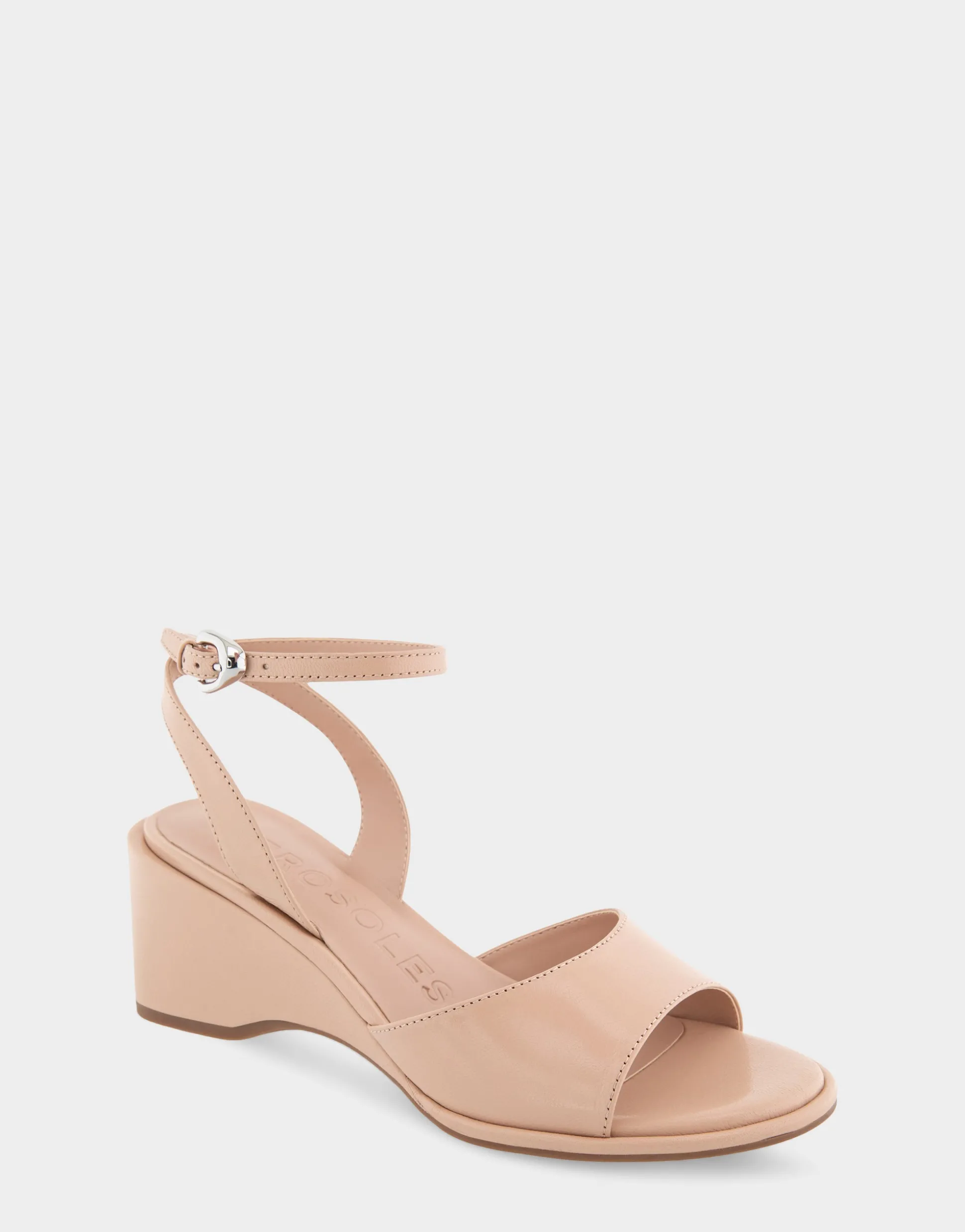 Comfortable Women’s Two Piece Ankle Strap Wedge Sandal in Cipria Leather